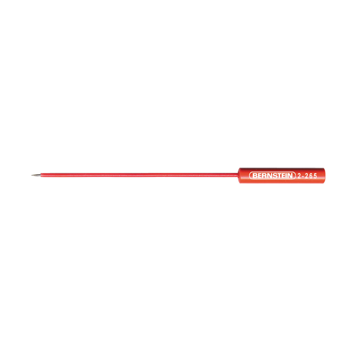 BERNSTEIN test probes are particularly thin, pointed and flexible. The fully insulated and flexible design of the test probes prevents short circuits and damage during testing and measuring, even when the contacts are arranged closely together.Rated voltage CAT I: 60V (DC/30V CAC).Measurement category CAT Irated voltage 30 V / AC and 60 V / DCvery fine, thin, flexible tip1 mm steel wire with a finely ground tip1 mm steel wire with a finely ground tipcompletely insulated except for the tipConnection for 4 mm socketplastic handlelength 155 mmweight 9 g